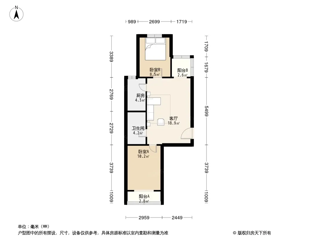 户型齐全,主打明厨,客厅朝南二居