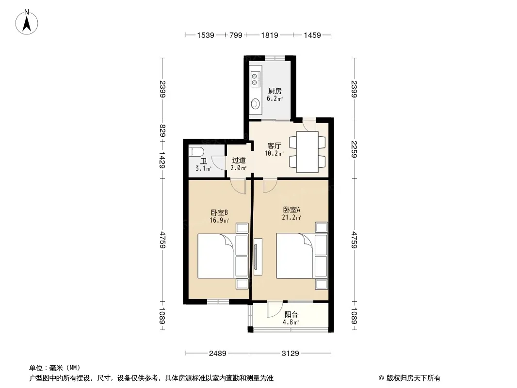 户型齐全,主打户型方正,明厨,双卧朝南二居