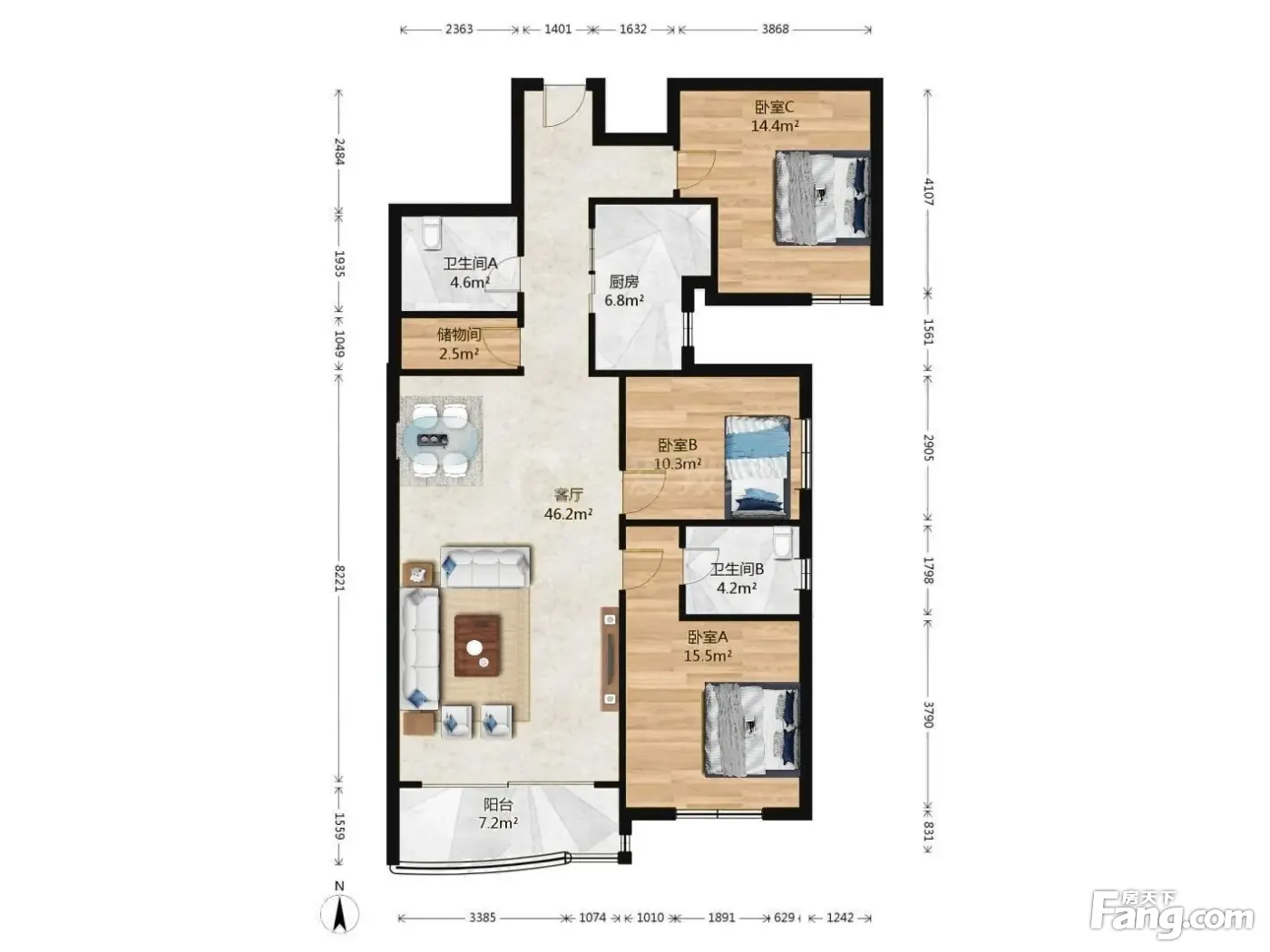3室1厅2卫