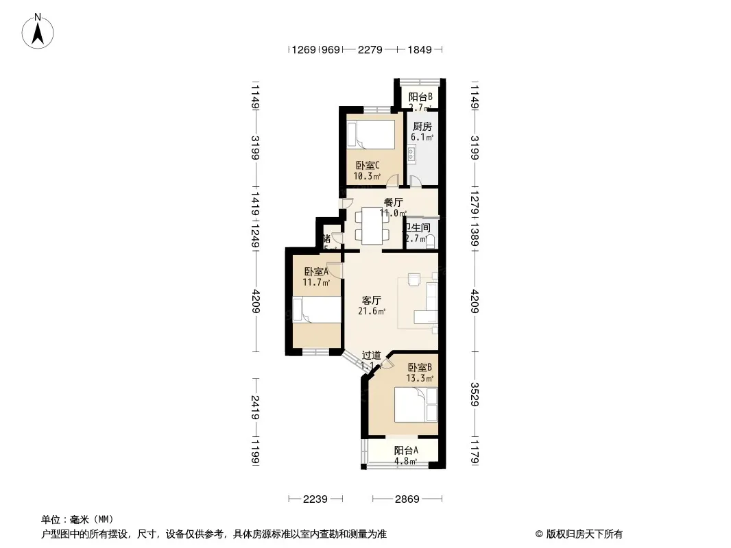 户型齐全,主打户型方正,双阳台二居