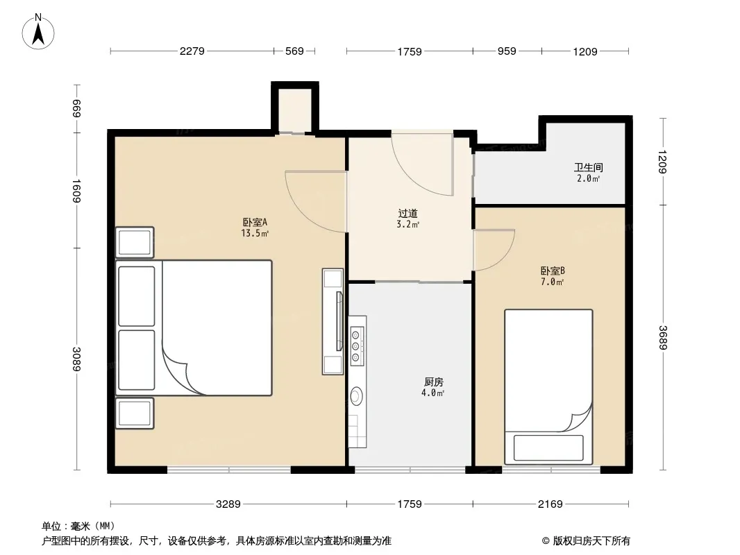 明源北里 2室1厅 南 北