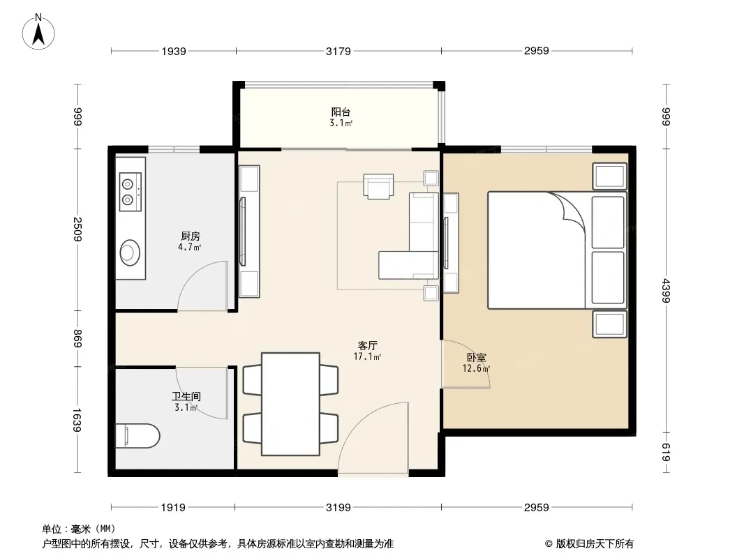 户型齐全,主打户型方正,明厨,主卧朝南二居