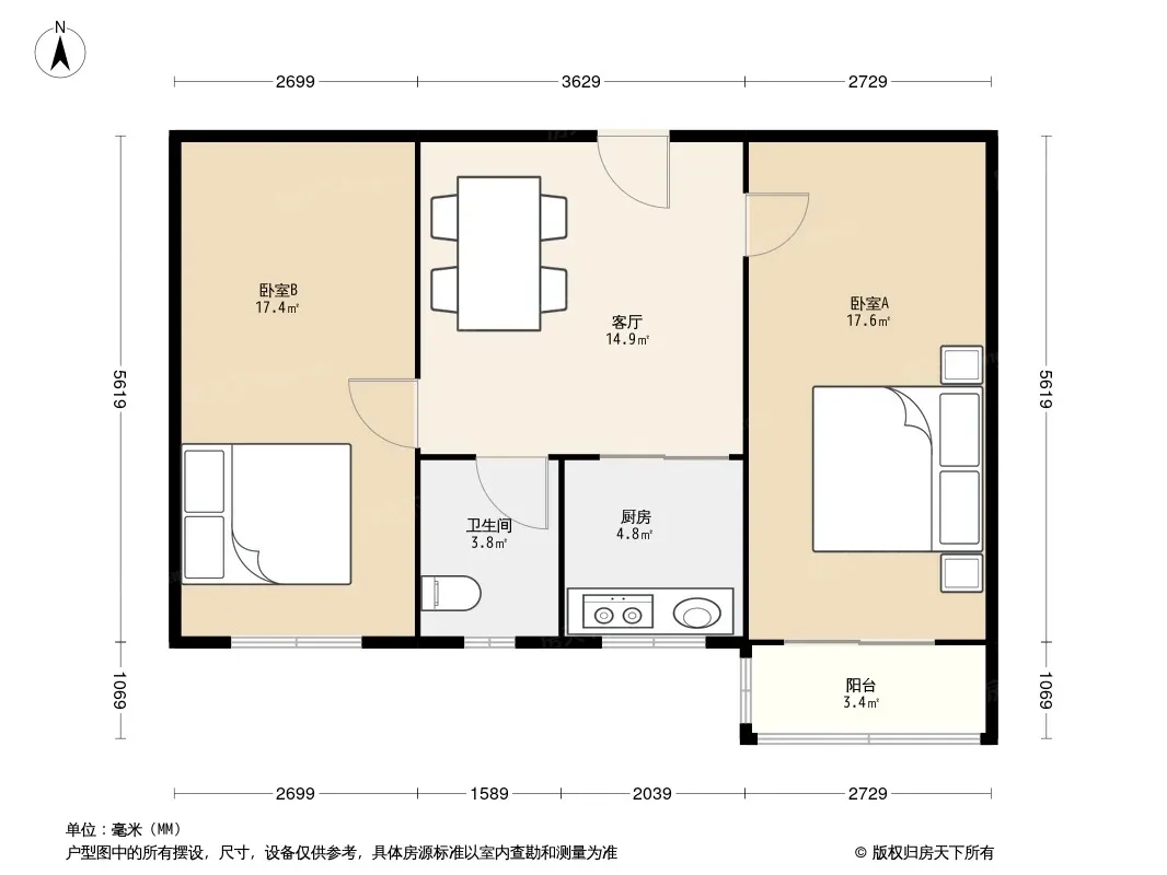 户型齐全,主打户型方正,双阳台,主卧朝南二居