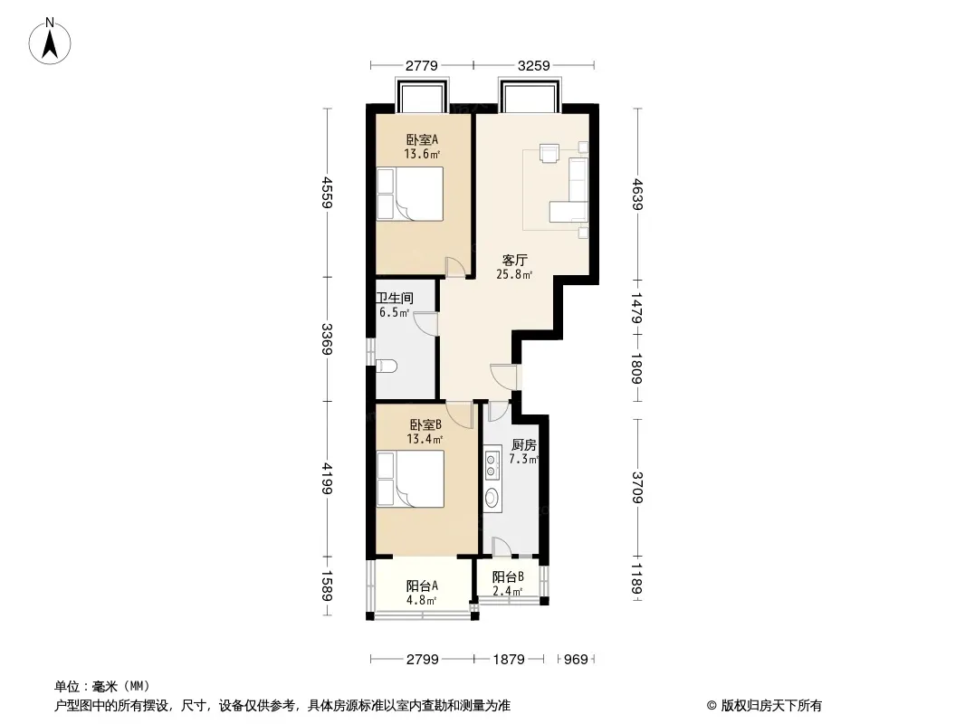 户型齐全,主打户型方正,客厅朝南,双阳台二居