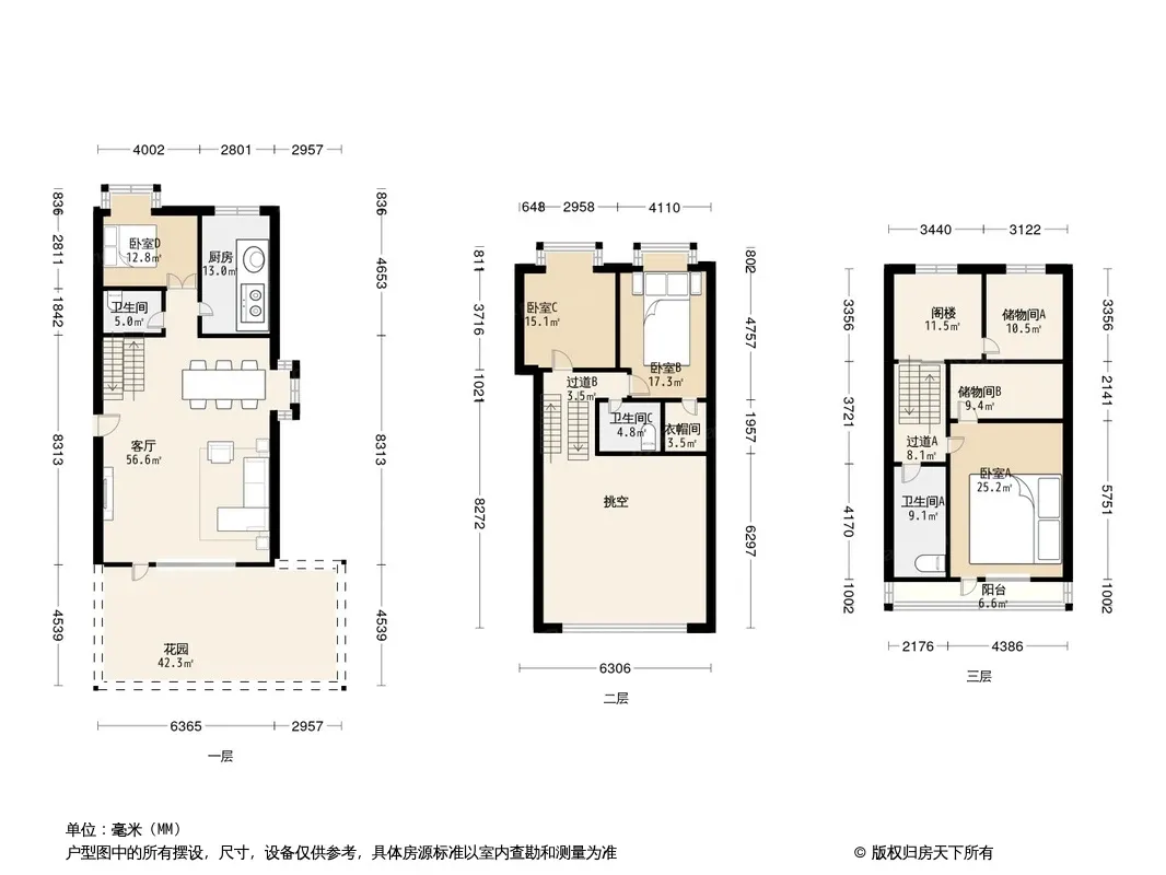 果岭里 叠拼大四居室 东边户 首层院子