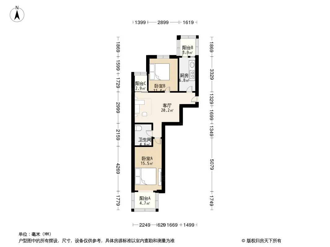 户型齐全,主打户型方正,客厅朝南,双阳台二居