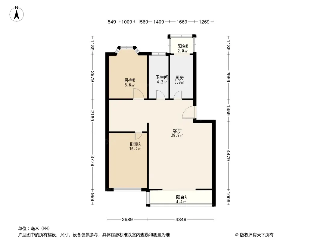 户型齐全,主打户型方正,客厅朝南,双阳台二居