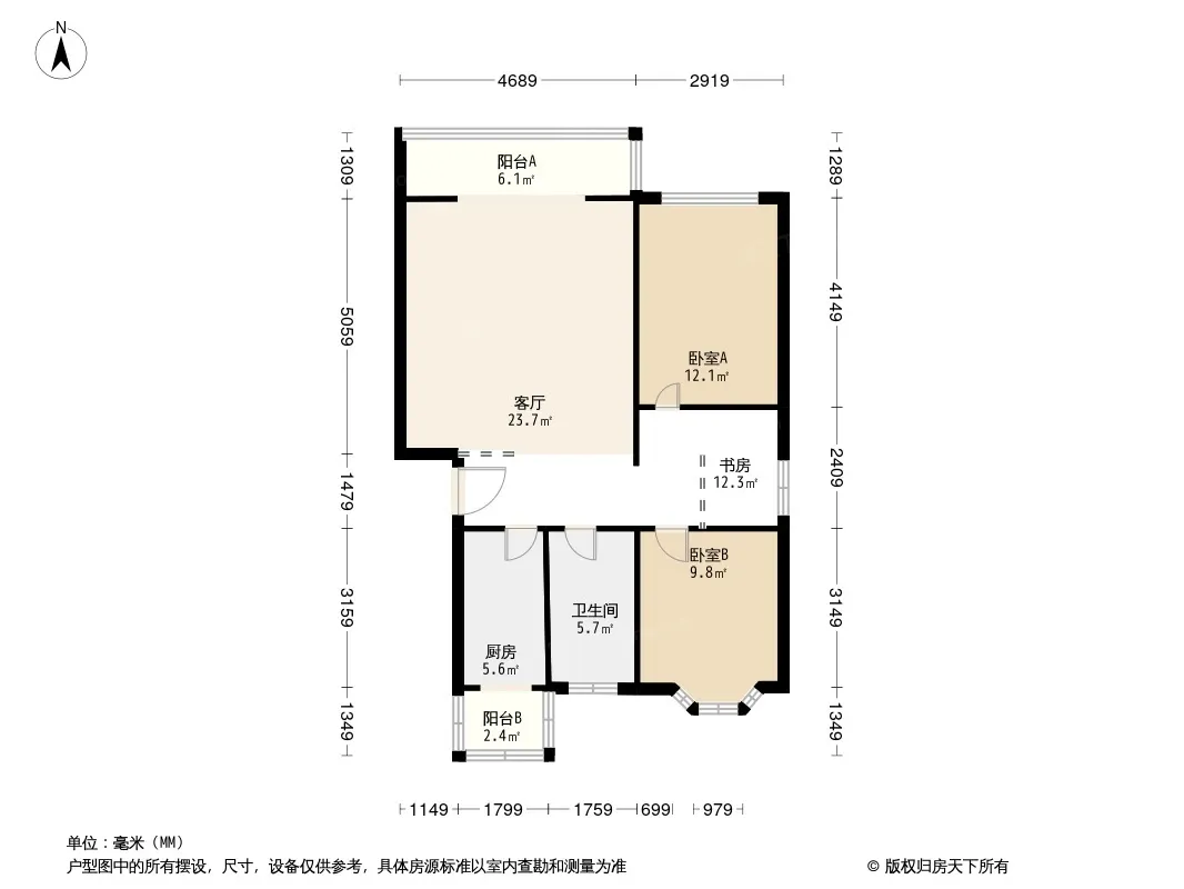 户型齐全,主打户型方正,客厅朝南,双阳台二居