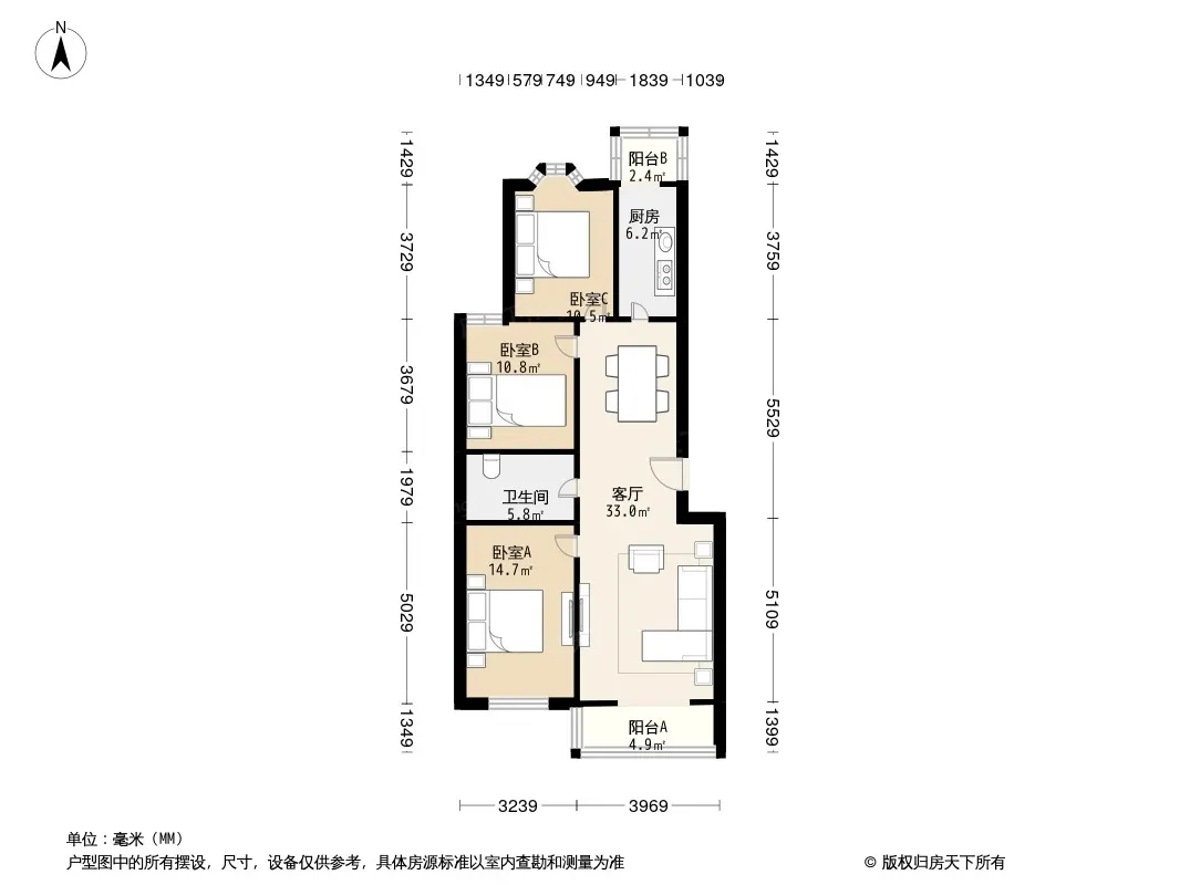 户型齐全,主打户型方正,客厅朝南,双阳台二居