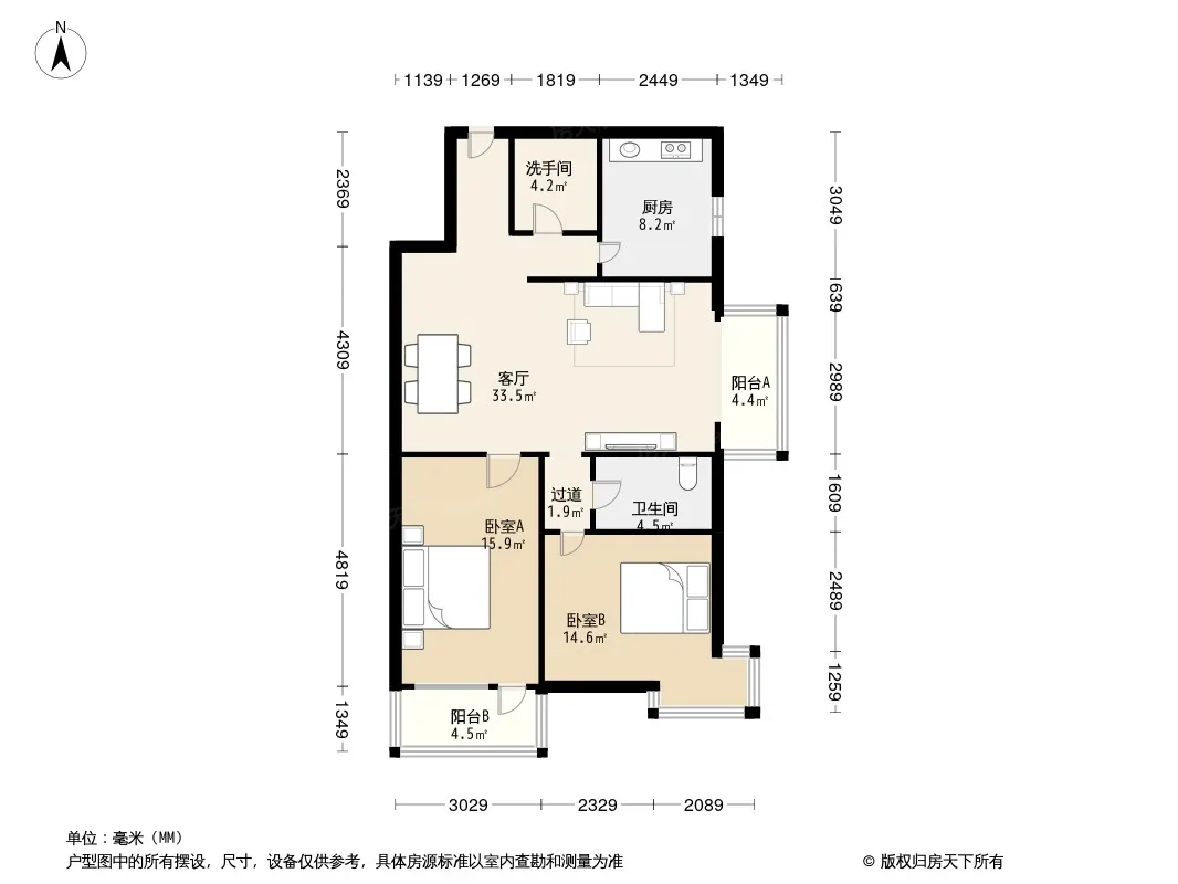 户型齐全,主打户型方正,双阳台二居