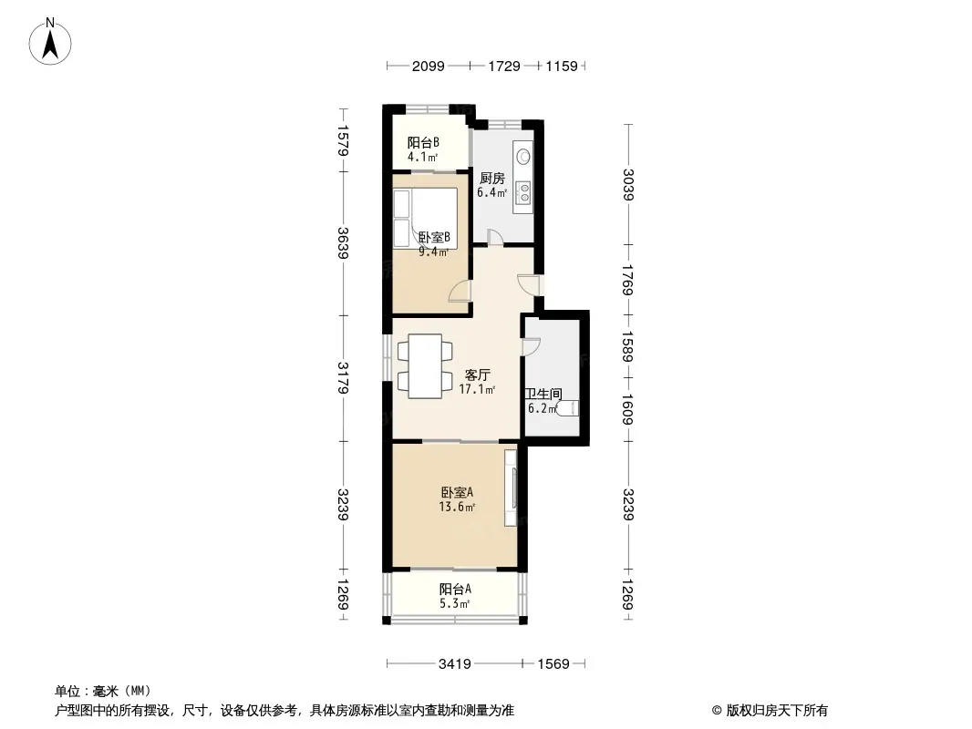户型齐全,主打户型方正,双阳台二居