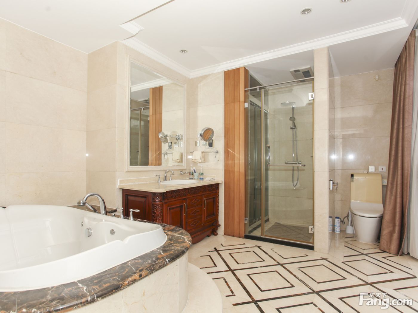 业主原来一直是自主,房子目前是欧式精装修,客厅用的是进口大理石,餐厅厨房用的是进口瓷砖,卧室用的都是实木地板,装修装饰用材都是环保材料,保养,基本可以拎包入住。户型介绍: 1、3—4层跃层,更易观景,主仆分社入口,尽显尊贵。 2、弧形透明楼梯间,美观实用,20㎡的阳台双层通顶,是名副其实的“空中别墅”。 3、竖向生活分区:一层为服务空间与起居空间,餐厅独立,起居室达50㎡,二层自成格局,主卧带南向书房。 4、原始户型是4居室,业主巧妙改为五居室加一个书房,是所有在售同户型中改动客户很认可的;