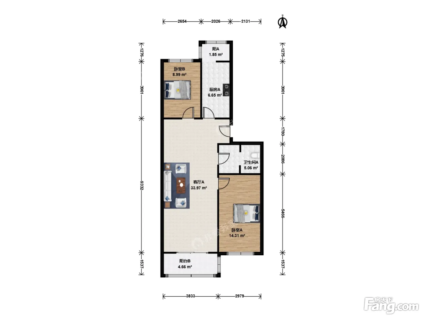 户型齐全,主打户型方正,客厅朝南,双阳台二居