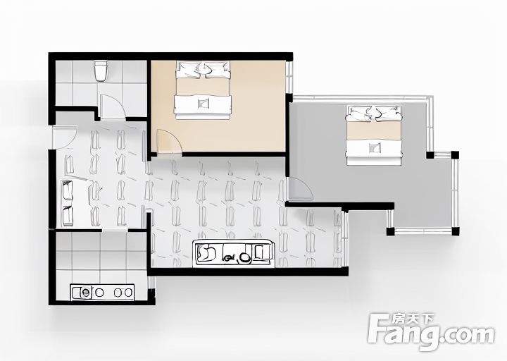 户型齐全,主打明厨,客厅朝南二居