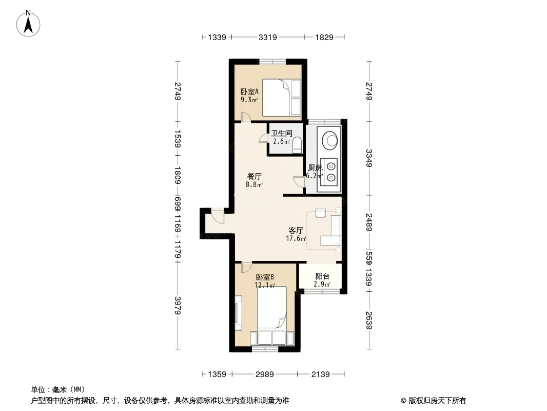户型齐全,主打户型方正,明厨二居