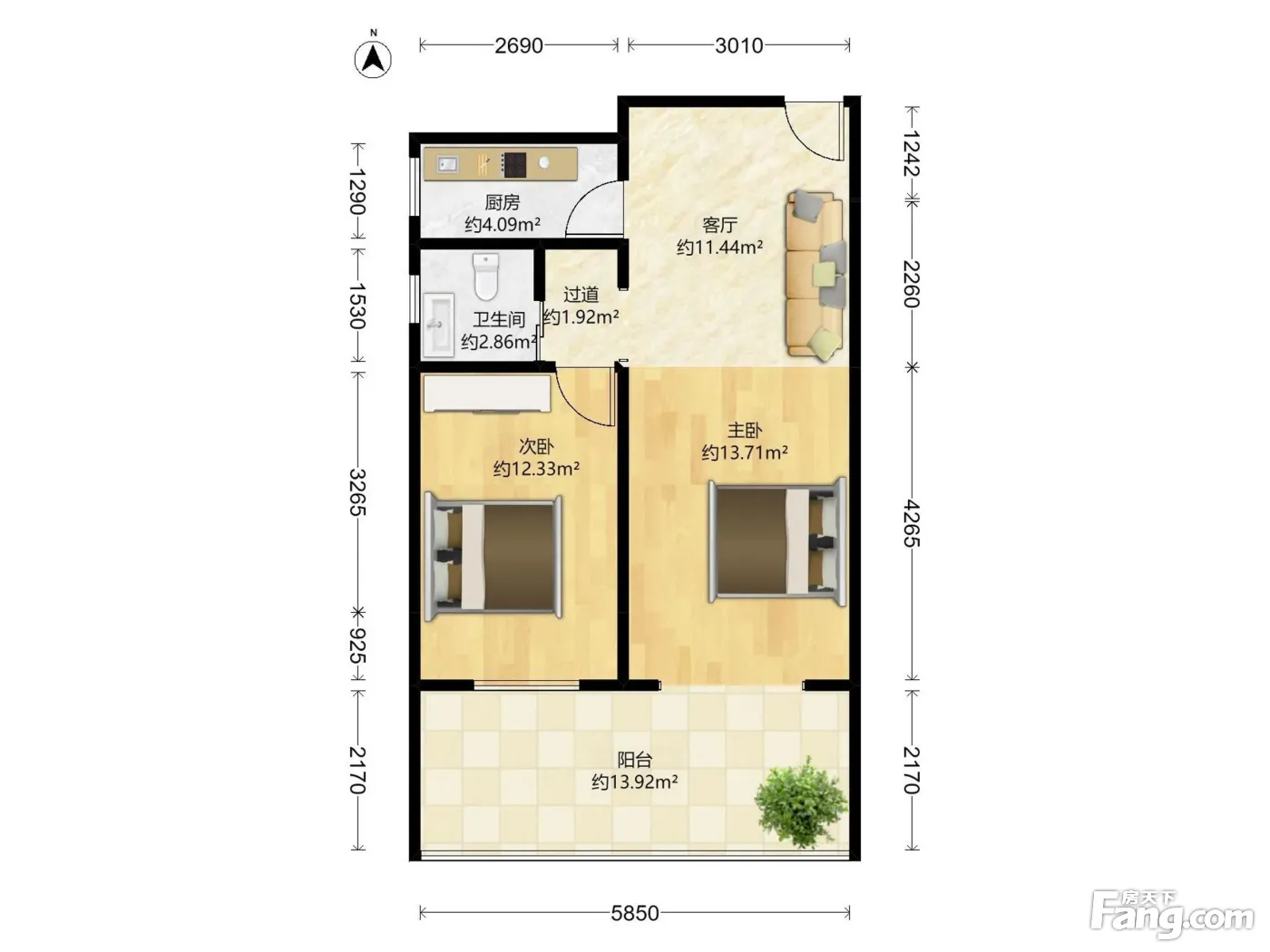 户型齐全,主打户型方正,明卫,明厨,主卧朝南二居