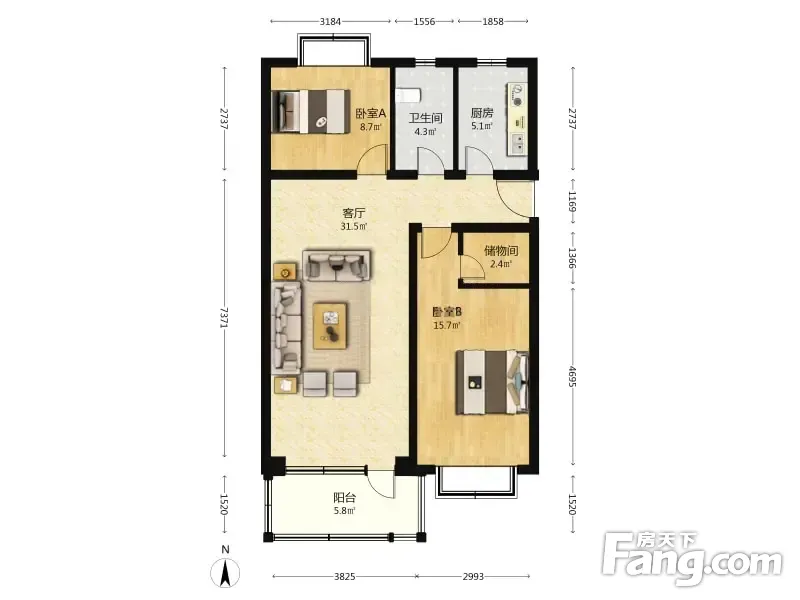 户型齐全,主打客厅朝南三居