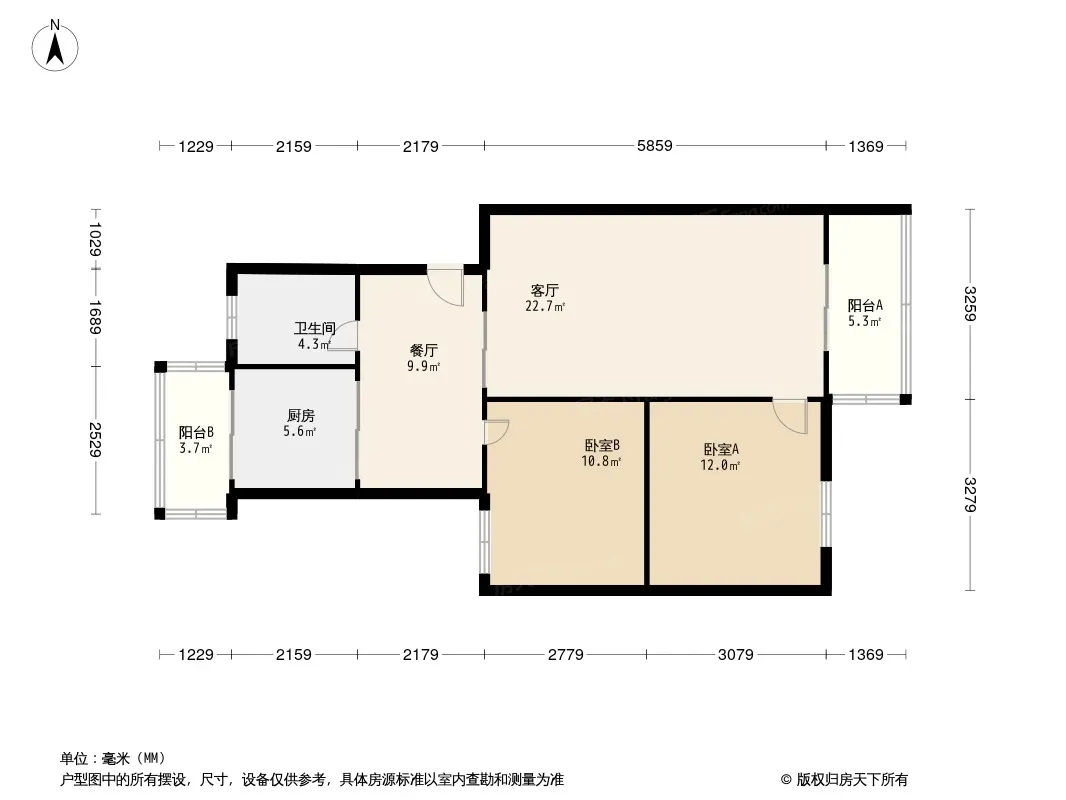 户型齐全,主打户型方正,客厅朝南,双阳台二居
