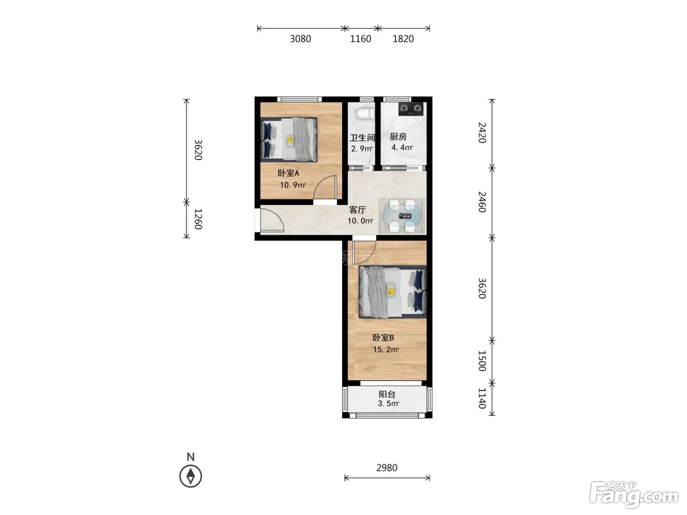 北重西厂 2室1厅 南 北