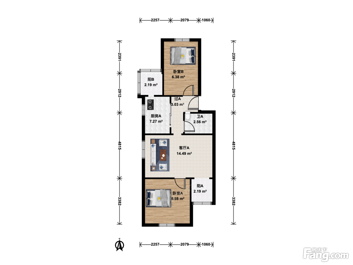 北重西厂 2室1厅 南 北