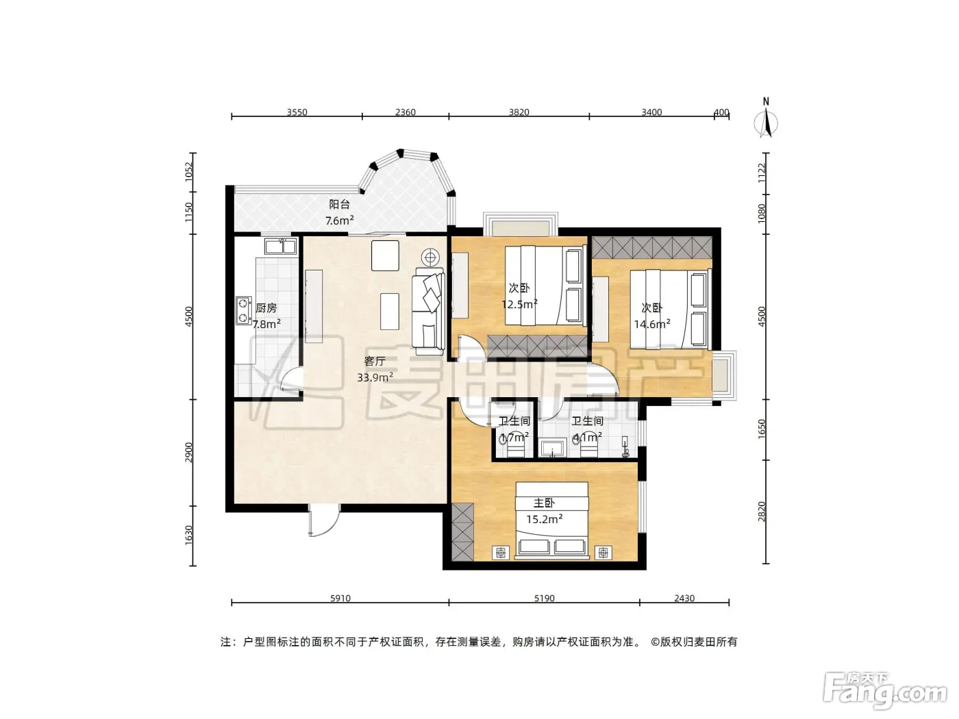 户型齐全,主打明卫,双卧朝南,主卧朝南三居