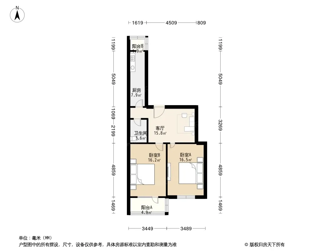 户型齐全,主打户型方正,明厨,客厅朝南,双阳台,主卧朝南二居