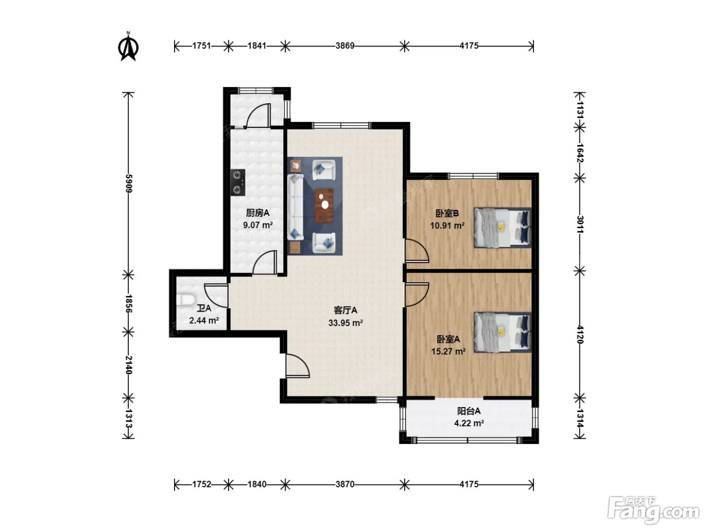 户型齐全,主打户型方正,明厨,客厅朝南,主卧朝南二居