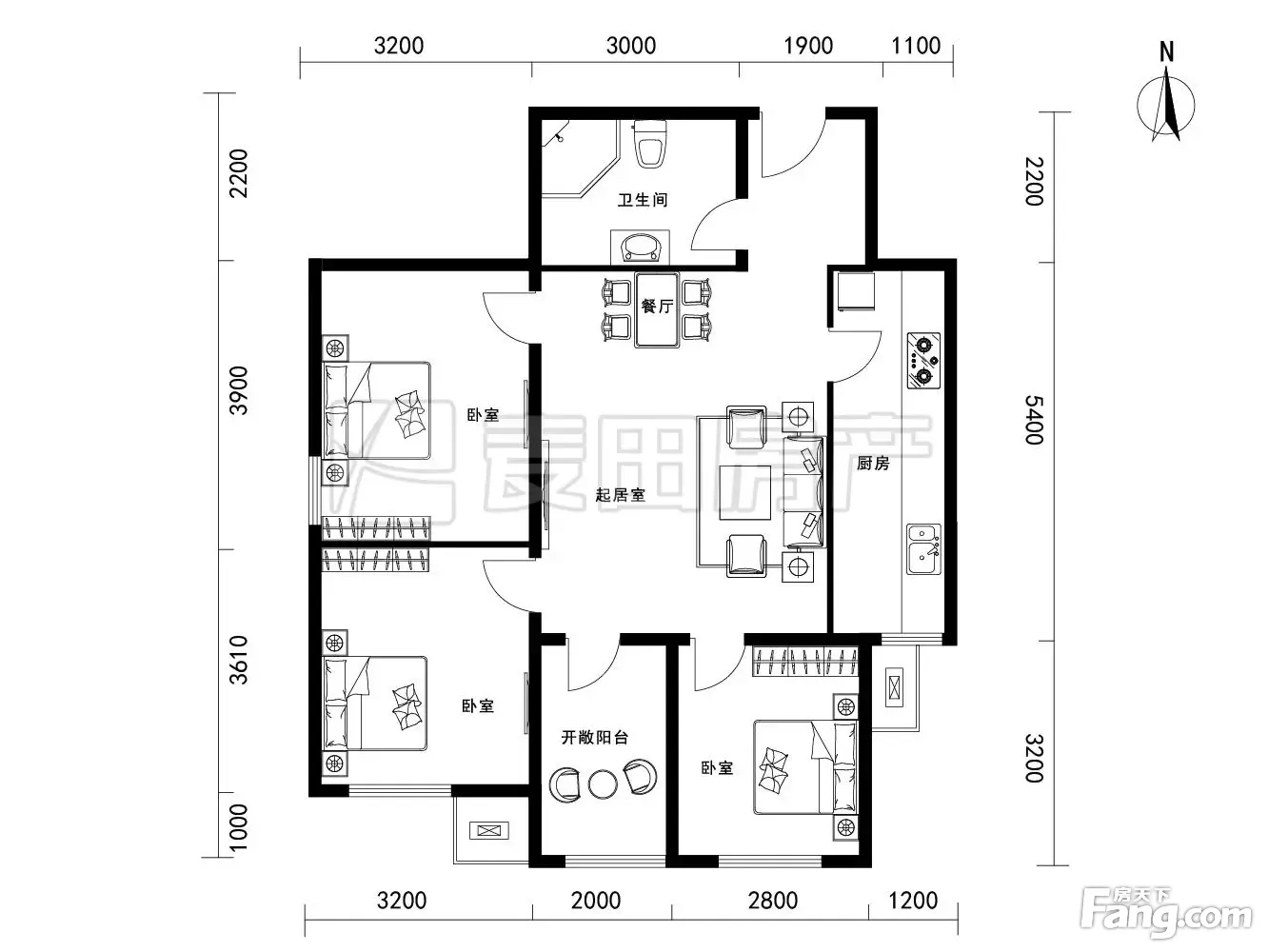 户型齐全,主打户型方正,明厨,客厅朝南,主卧朝南二居