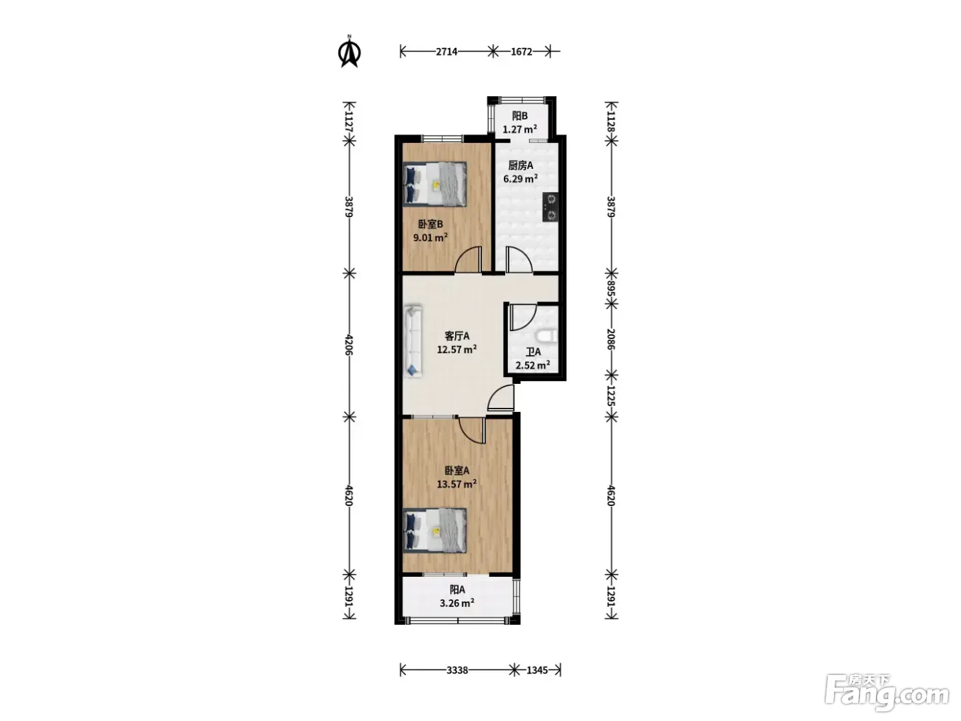新华街六里 2室1厅 南 北