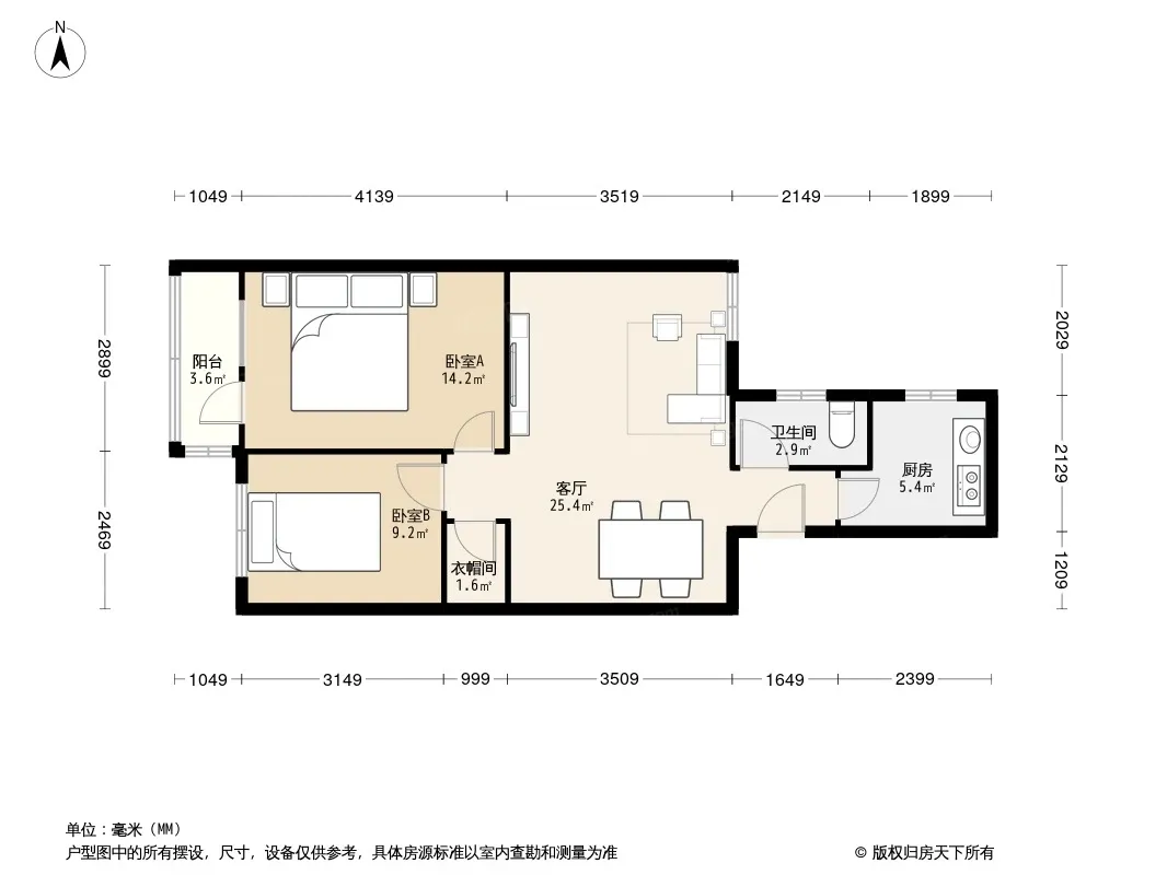 户型齐全,主打户型方正,明卫,独立衣帽间,明厨,客厅朝南,全明格局,双卧朝南,主卧朝南二居