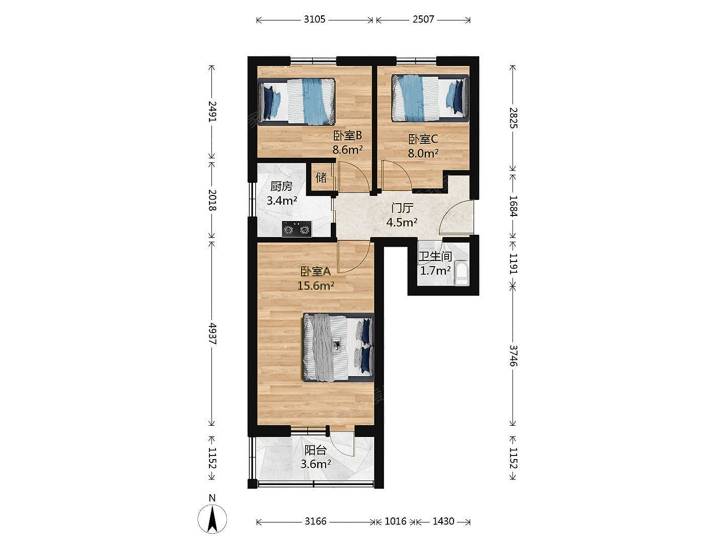 3室1卫