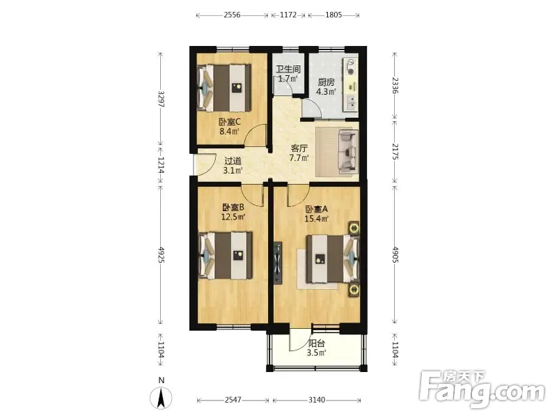 六建3室1厅南北