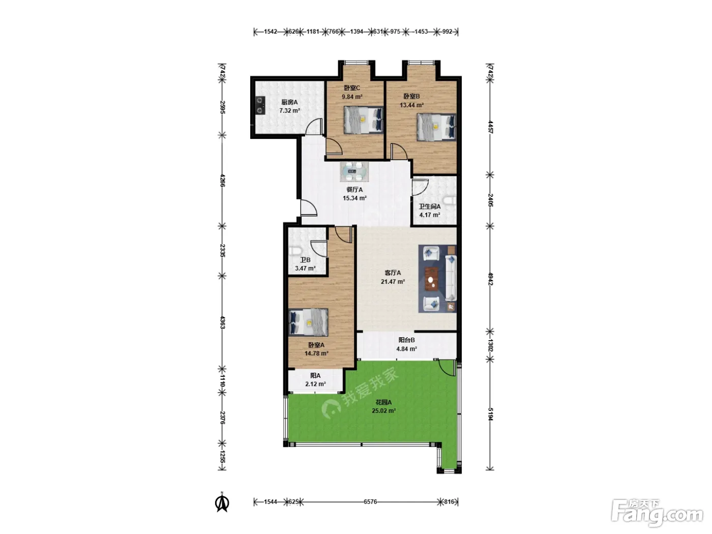 万年花城三期3室2厅南北