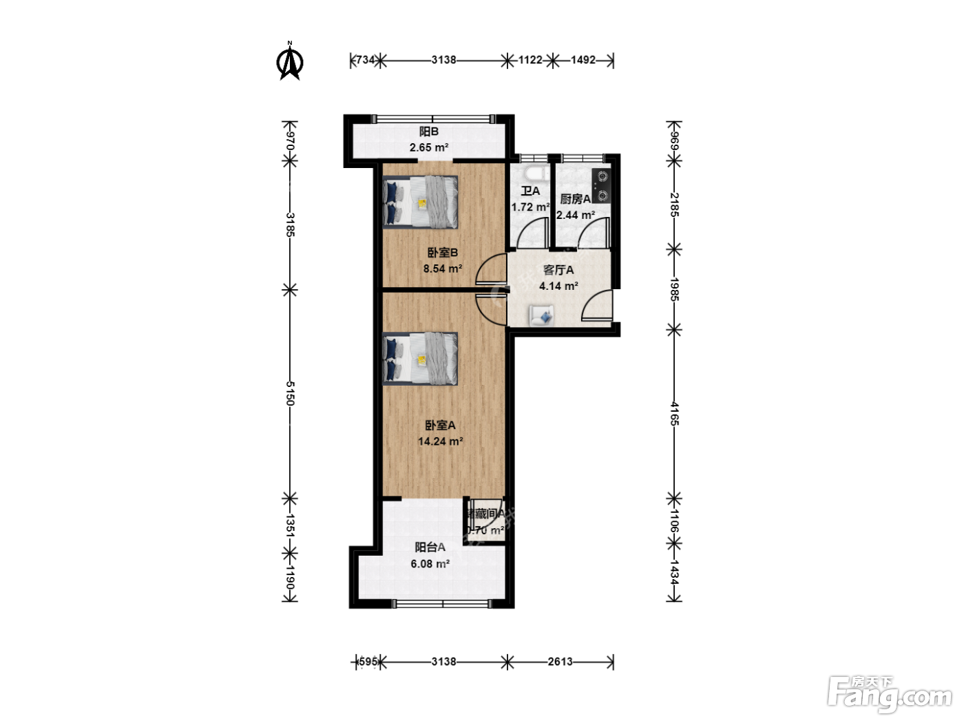 户型齐全,主打双卧朝南,主卧朝南二居