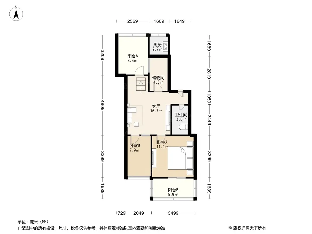 户型齐全,主打户型方正,明厨,双阳台,主卧朝南二居