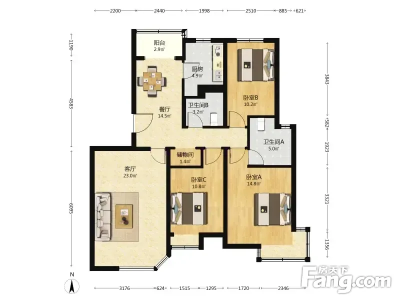 3室1厅2卫