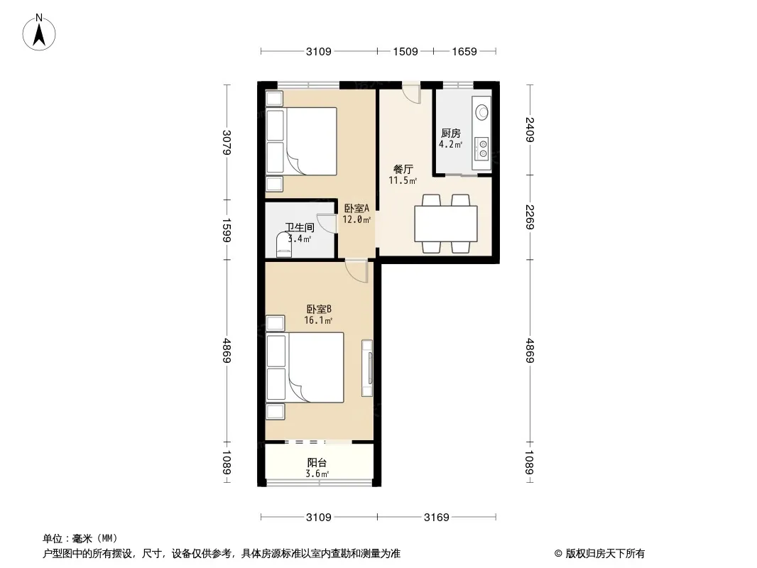 户型齐全,主打明厨,双卧朝南二居