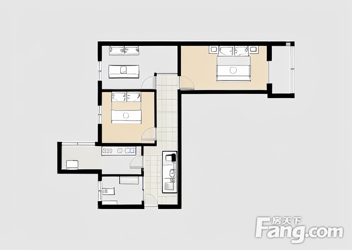户型齐全,主打明厨,客厅朝南,主卧朝南二居
