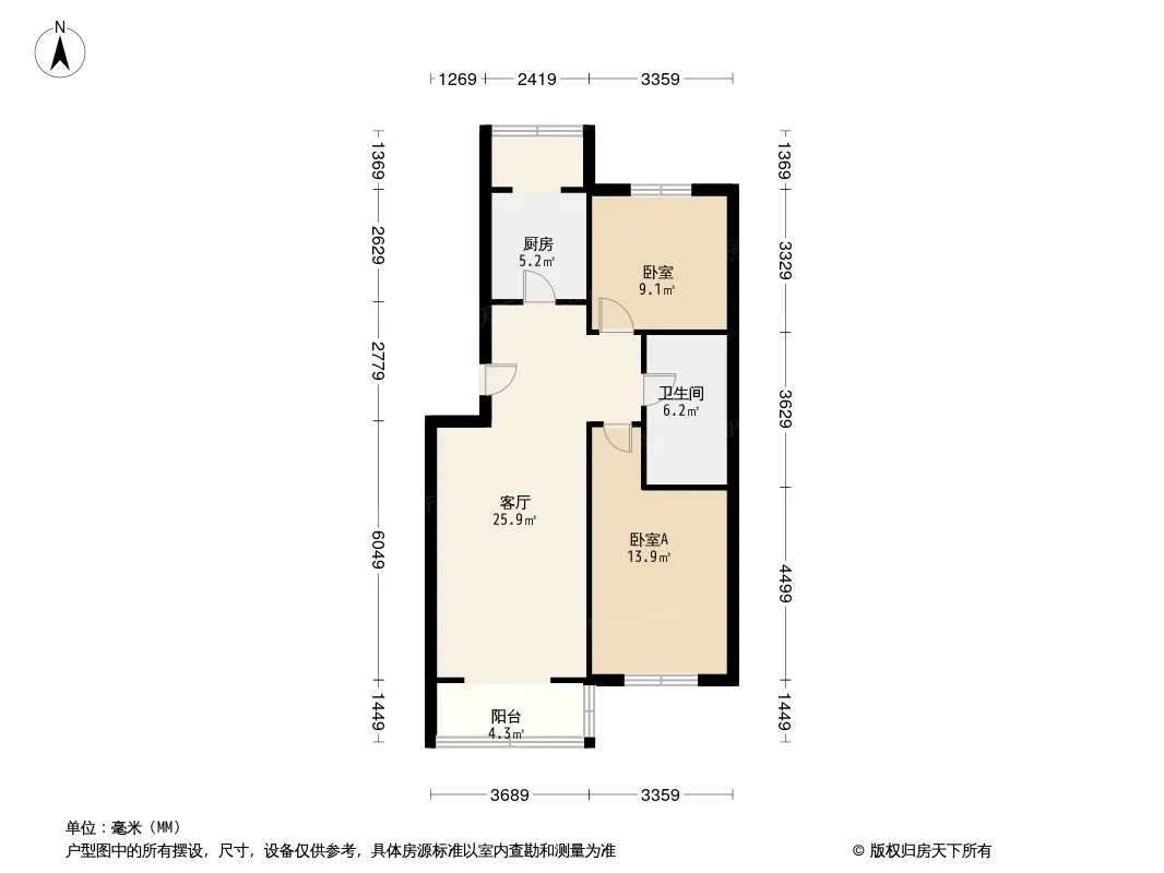 樱花园一区 2室2厅 南 北