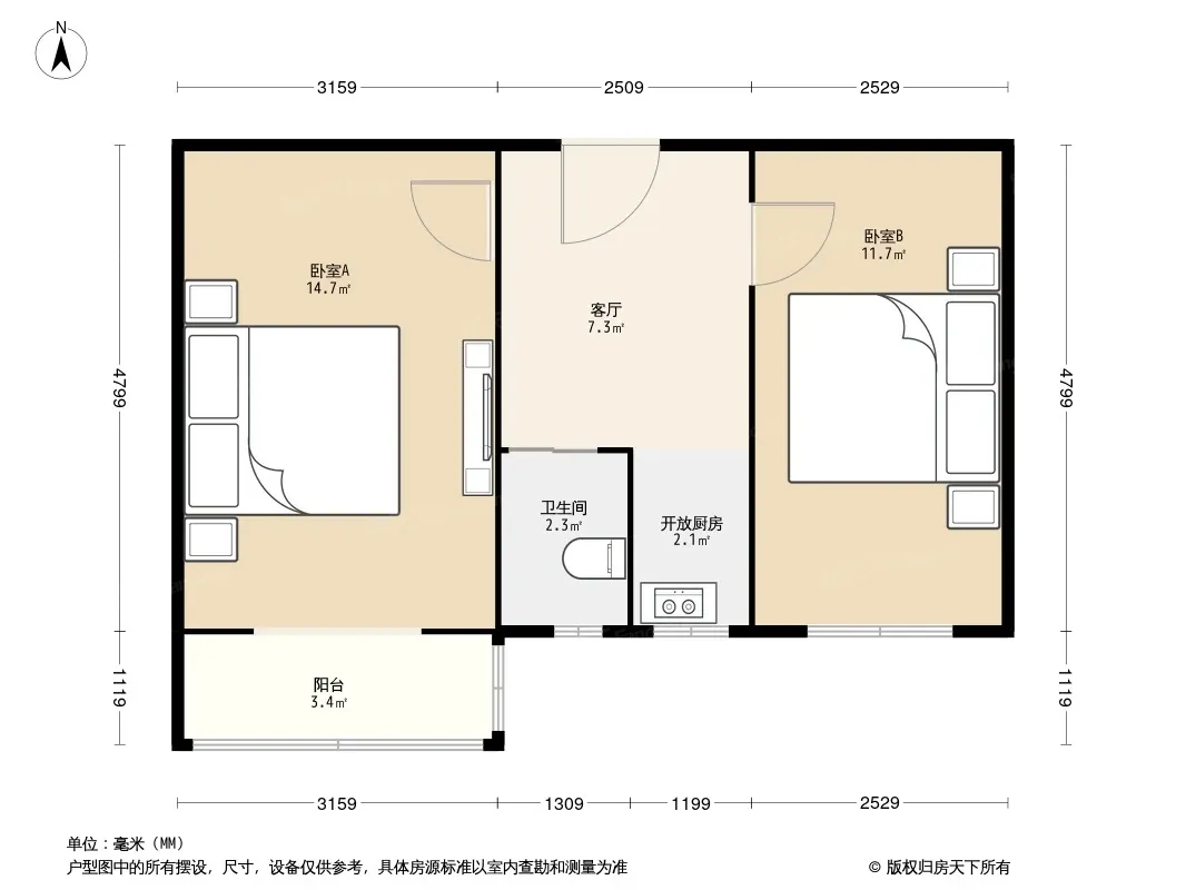 户型齐全,主打户型方正,明厨,主卧朝南二居