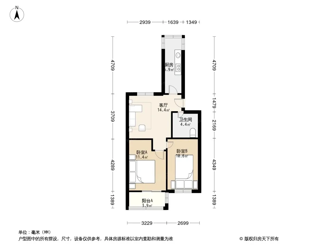 户型齐全,主打户型方正,明厨,双阳台,主卧朝南二居