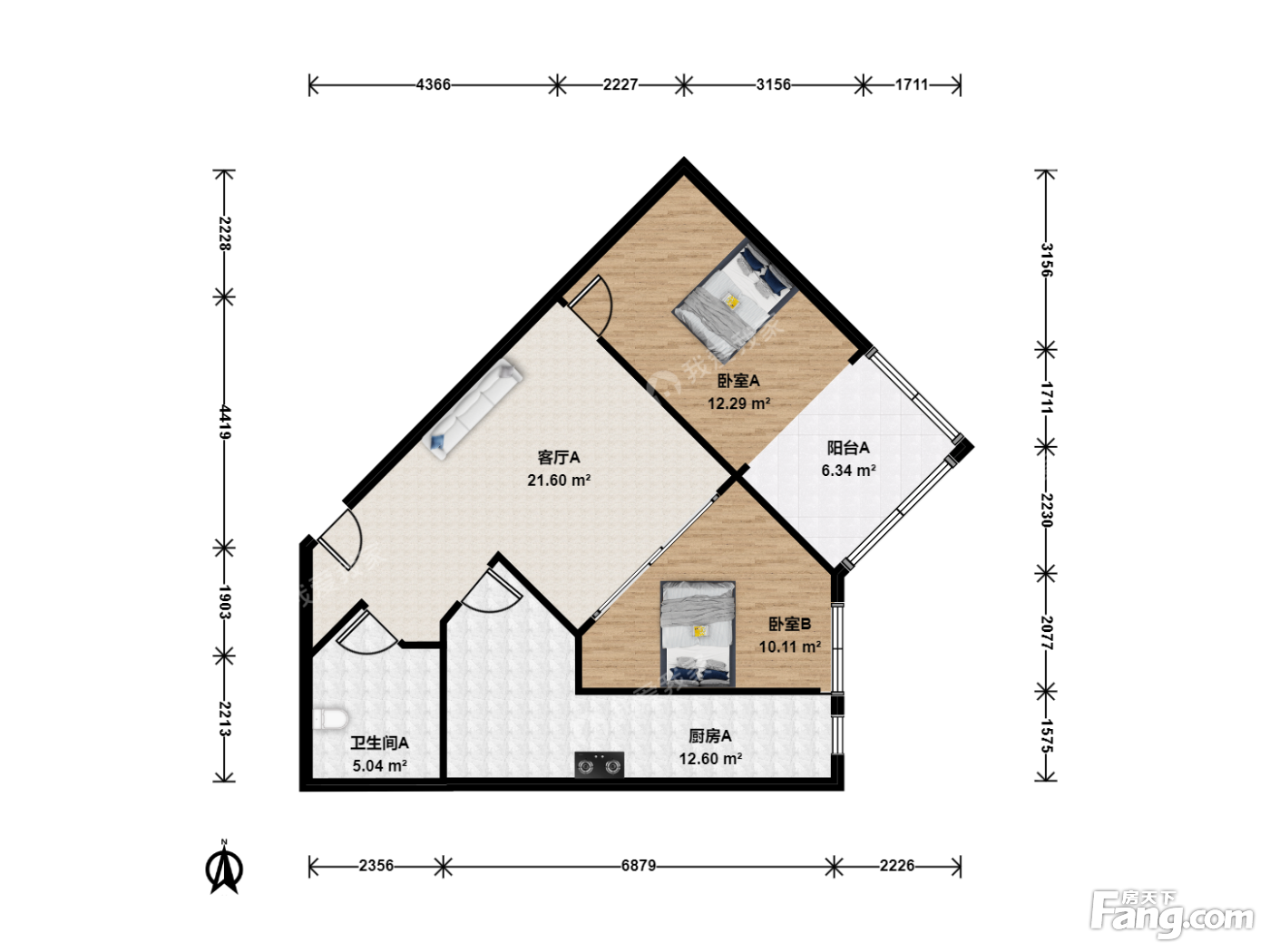 户型介绍:房子是东南向的两居室,精装修,高楼层采光好,视野好。