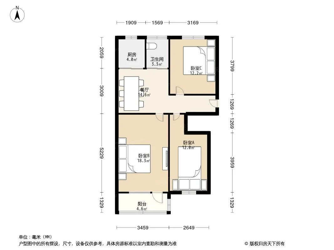 右安门内西街甲10号院 3室1厅 南 北