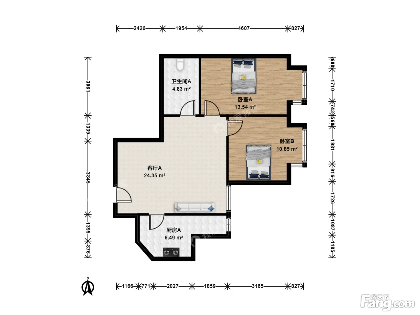 核心卖点:互相方正,布局合理。没有浪费面积,