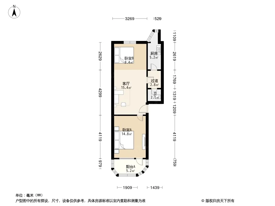 户型齐全,主打户型方正,明厨,主卧朝南二居