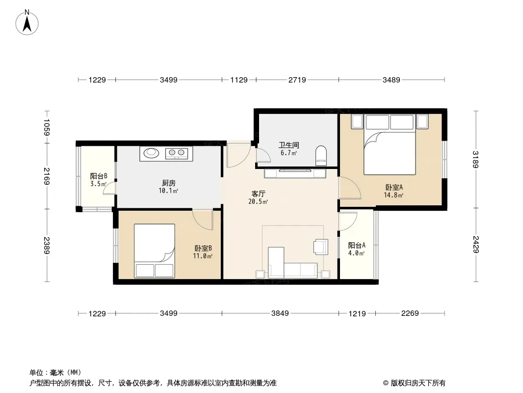 户型齐全,主打客厅朝南二居