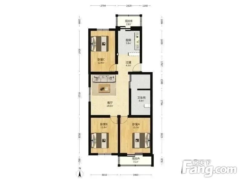 户型齐全,主打户型方正,客厅朝南,双阳台二居