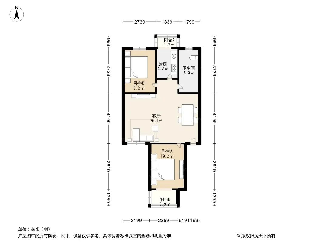 户型齐全,主打户型方正,客厅朝南,双阳台二居