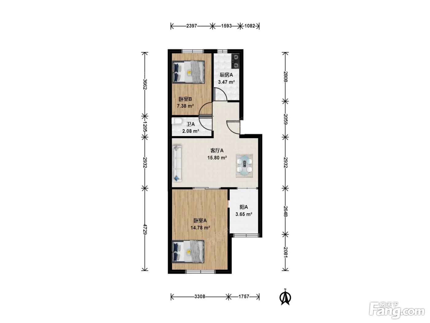 户型介绍:本房源南北通透,双朝南,主卧客厅都朝南带窗户,厨房北向有窗户。采光通风俱佳,安静不临街,前后无遮挡,采光好、视野好。