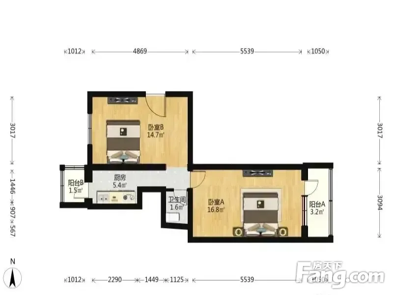 五棵松 金沟河2号院 中间层 全日照两居室 无遮挡 采光好